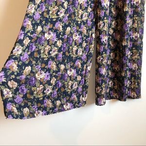 SOLD | Vintage Floral Boho Pleated High Waist Wide Leg Flowy Pants Bottoms Blue