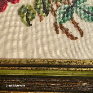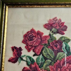 SOLD - Vintage Needlepoint Floral Roses 10X10 Framed Hanging Wall Artwork