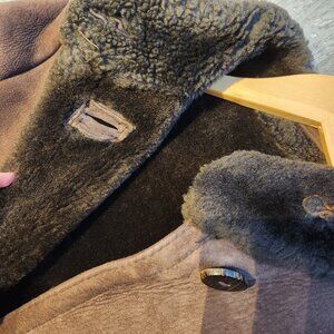 @mtlshopaholic hello! Yes, this is a vintage, genuine leather with real shearling. The armpit measurement is roughly 17”. I just realized these photos are really low quality— I can take it out of storage to get better photos and see if there are other tags to confirm to reassure you of its contents. I will reply and tag you once complete☺️ Please note that this will require professional cleaning, which is why it is priced lower, but it is in beautiful condition!