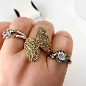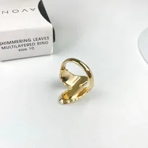 A Vintage Women’s Avon Gold Tone Shimmering Leaves Multilayered Ring, a captivating piece that exudes elegance, intricately designed leaves, shimmering in a radiant gold tone that effortlessly enhances any outfit and it adds a touch of nature-inspired beauty to your jewelry collection.