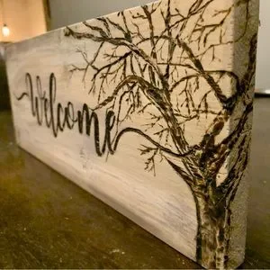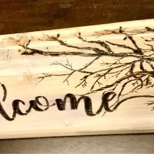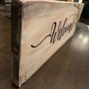 Hand burned welcome sign on repurposed scrape wood that was used for a build and would have normally been discarded. Please keep checking in to see new listings of projects. I also welcome ideas of items that you may want to see. I am always happy to do my best to create something unique.