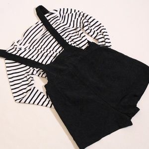Crafted from corduroy fabric, this pinafore romper features dual pockets design and a square collarline.