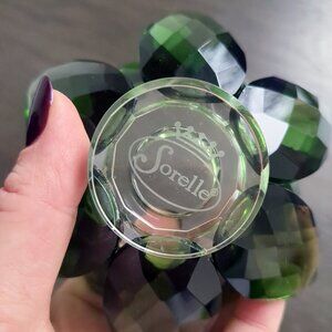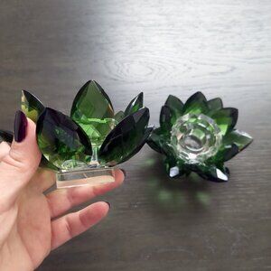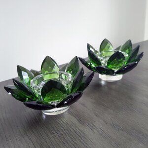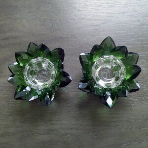 2x Sorelle Vintage MCM Lotus Candle Holder in Faceted Crystal Emerald Green Cut