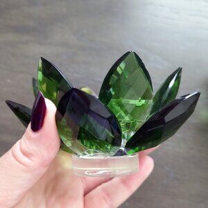 [SOLD]2 Sorelle Vintage MCM Lotus Candle Holder in Faceted Crystal Emerald Green