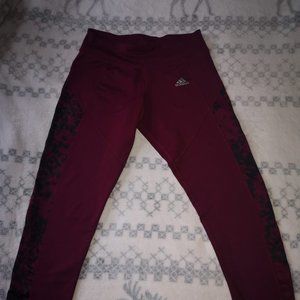 Stretchy dark red leggings with a red/black lepard print on the side. In size small. In great condition.