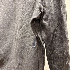Grey in colour. No issues as it’s brand new. Very soft material. Size medium.