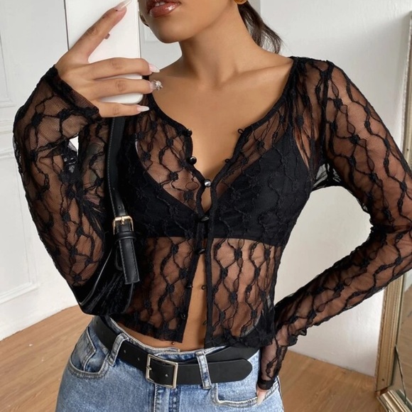 Selling this button up lace long sleeve from SHEIN! Super cute, I just wish I sized up!