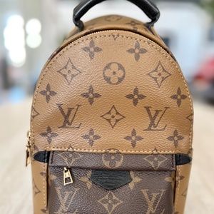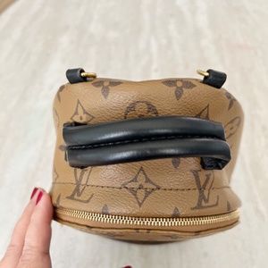 The Palm Springs Mini is a stylish and versatile bag that is hard to find especially in monogram reverse print. It's in excellent condition, and it can be converted into a backpack or a crossbody bag. Surprisingly, it holds a lot, and it features a newer version zipper. This is the perfect bag for quick errands and on-the-go moms like me. It conveniently fits a compact wallet, phone, some lippies, keys, my toddler snacks and small water bottle. š±