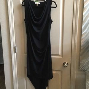 Navy blue MK dress with high/low hem, drape neck, and draping in the back creating a very flattering silhouette. Worn once. Bundle 3-☀️☀️☀️items get 30% off all 3 items