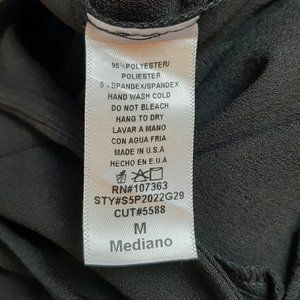 Black, tie back, size medium, dressy jumpsuit. Spaghetti strap, tapered leg.