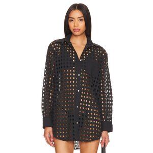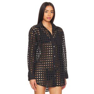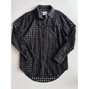 SOLID & STRIPED Black Cotton Eyelet Oxford Tunic Button Up Cover-Up, Size S