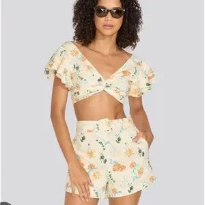 Flirty and feminine, The Renata Top features a v-neckline, ruffled sleeves, a low, scooped back, and an invisible side zipper.