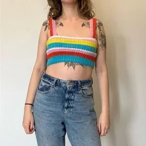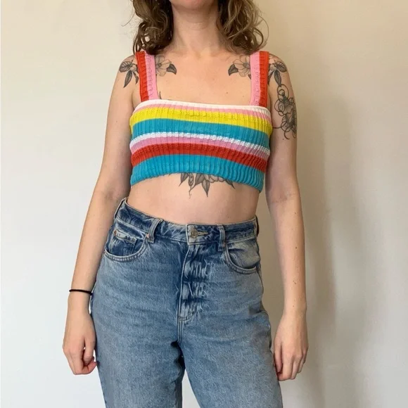 Solid & Striped multicoloured crochet cropped tank top croptop festivalvibes