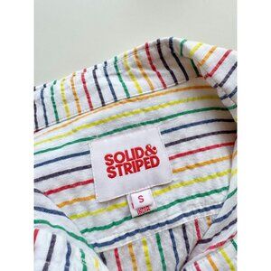 SOLID & STRIPED White Rainbow Cotton Seersucker Oxford Shirt Cover-Up, Size S