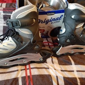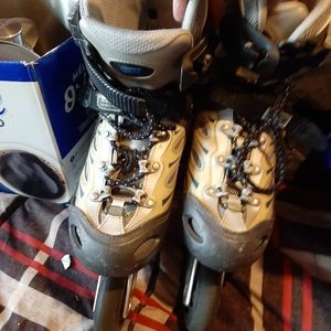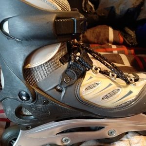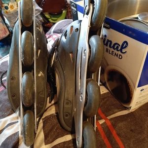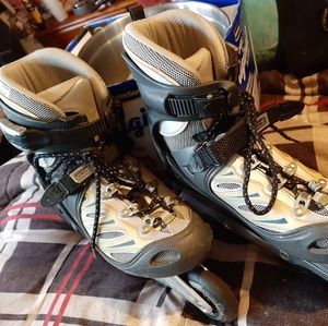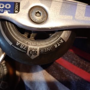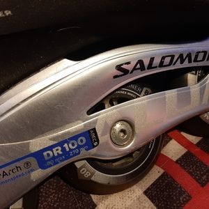 SOLOMON women's PowerArch2/ ABEC5/DR100/80max-270mm with Blue& Reflective Silver Accents on top of foot area. Work perfect. Wheels still mint and free moving. Do not stick or freeze up