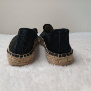 SOLUDOS Calf Hair Slip On Smoking Slipper Platform Espadrilles Black Size 8