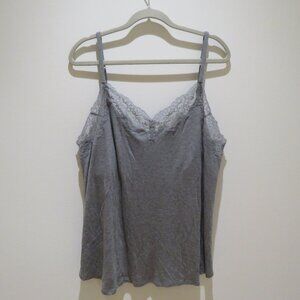 SOMA Cool Nights Rib Lace Trim Pajama Cami Top in Gray Lounge Comfy Size XL NWT