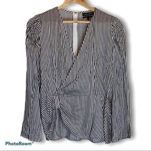 SOMETHING Navy gathered peplum striped blouse top Nordstrom Women’s Size S