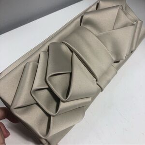 SONDRA Roberts Satin Triple Bow Taupe Clutch