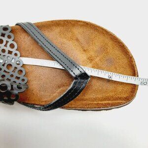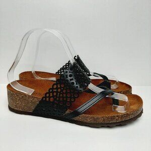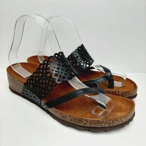 SONIA C. Italy Cork Low Wedge Heel Sandal Thong Sandal Black Geo Circle Sz 8