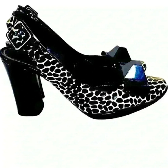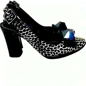 SONIA RYKIEL BLACK WHITE ANIMAL PRINT SLINGBACK HEELS SHOES SQUARE TOE SIZE 6