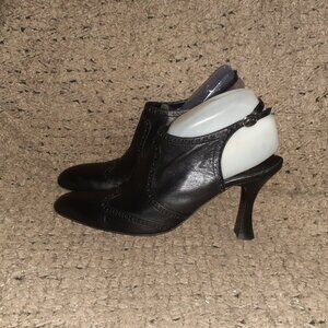 SONIA RYKIEL-Vintage Black Leather Brogue/Wingtip Slingback Sandals-Sz 38.5-NM