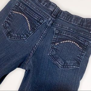 Studded sequins on the back pocket — missing 2 sequins on the right pocket. Not noticeable when wearing