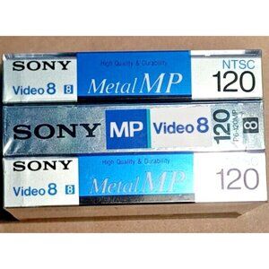 This listing is for 3(three) SEALED NEW Sony Metal MP Video8 blank cassette tapes...made in Japan