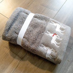 A plush set of hand towels from SOPHIA. The grey towels feature a row of white deer with a red ribbon. Very sweet! New with tags.