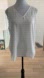 Sophie Grace ivory colour V Neck top has a high low hem. It is a bit on the sheer side. 100% polyester.. Due to the cut of the armholes a criss cross bra strap works best. This is a great staple for your closet by a Canadian designer. Wear this under a blazer for work, or on its own in the warmer months with a pair of jeans and flats.