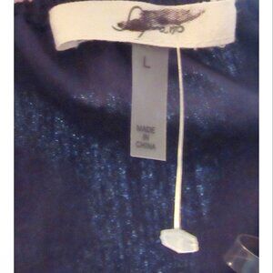 Navy Strapless 3/4 Sleeve Flair Cuff Tie-Front Women's Top, Size Large.