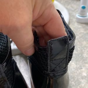 Cool patent leather mesh booties