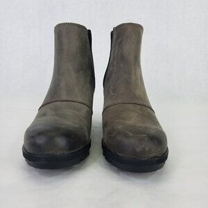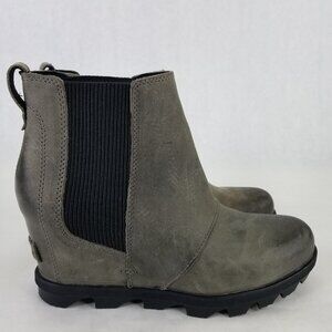 SOREL Boot Women 7.5 Joan Of Arctic Wedge II Chelsea Bootie Grey Leather Pull On