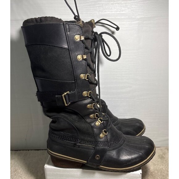 SOREL Boots Conquest Carly Woman NL2033-010 Tall Leather Duck Combat Size 8.5