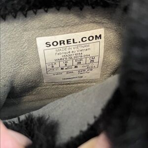 SOREL Glacy Explorer Gray Suede Winter Boots Black contrast Orange Laces, Size 8