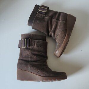 SOREL Toronto Suede Wedge Boots Brown Comfort Warm Waterproof Slouch sz 6.5