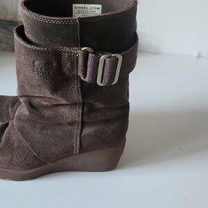 Selling SOREL Toronto Suede Wedge Boots Brown Comfort Warm Waterproof Slouch sz 6.5.