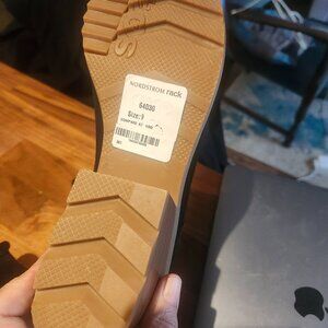 Lovely Sorel ankle boots. Brand new with tags. Black suede with rubber soles and wooden block heels. Never worn. Size 9. In perfect condition.
