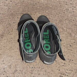 SOREL-Medina-Open Toe/Boot-Black Leather/Rubber/Nylon-Block Heel-Sz8.5-Near Mint