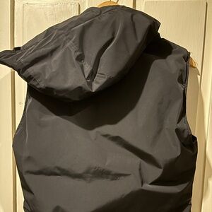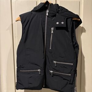 SOS is known for its edgy sportswear style. This biker inspired vest has a removable hood. High quality shell and construction - will stand up to wear. Like new - it never fit me correctly so it was not worn.