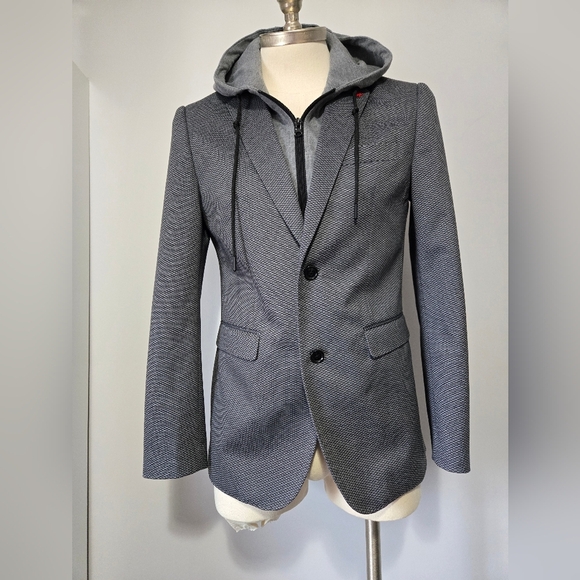SOUL OF LONDON Grey And Black Blazer with Rwmovable Hoodie. Size 38R