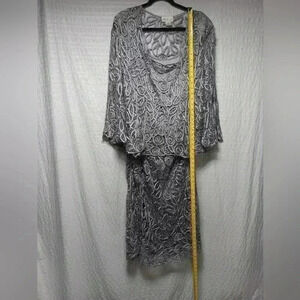SOULMATES Hand Crochet 3/4 Bell Sleeve 3pc Evening gown. Silver with beading. XL