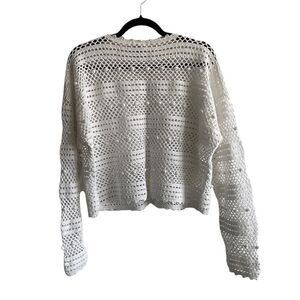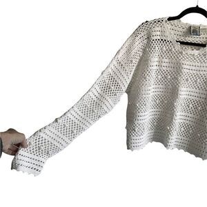 SOUTHERN COMFORTS Vintage Cotton Crew Neck Cropped Sweater White L