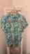 Vibrant tropical print. Short sleeves. Button-up collar.