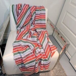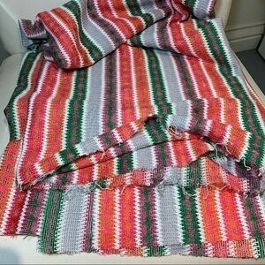 SOUTHWESTERN Crochet Knit Multicolor Throw Blanket Raw Hem Rectangular 66" x 60"