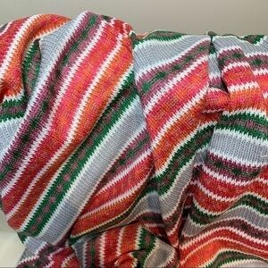 In Goof condition, very nice vibrant blanket, kind of knit tweed rectangular 66" x 60". Please see pictures