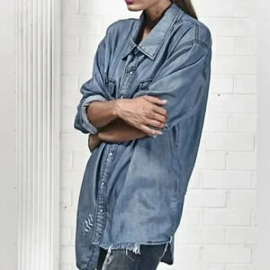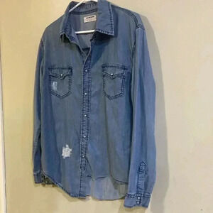 [S]One X Oneteaspoon Dallas Tencel Liberty JeanShirt Snap Button Down Distressed