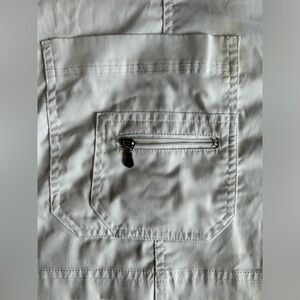 3 Pockets: 2 Shaped front patch pockets, 1 additional zipped pockets