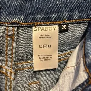 Sz 26 SPABOY jeans. Two tone with red and black spray painted polka dots.