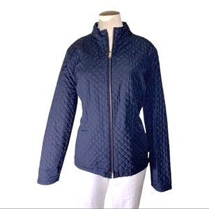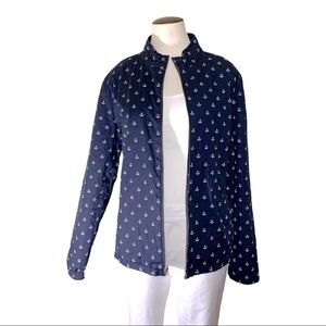 SPANNER Quilted Reversible Jacket Zip Up Sz L Navy Blue Anchors Pattern Pockets